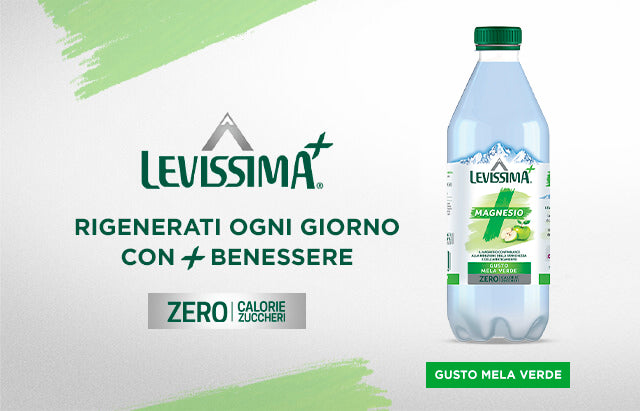 Nel suo formato da 50cl l’acqua con magnesio Levissima+ contiene il 20% del fabbisogno giornaliero di magnesio senza aggiungere calorie né zuccheri alla tua dieta.